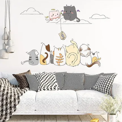 DIY Cartoon Lovely Cat Kids Wall Stickers Cute Animal Baby Rooms Home Decor Poster Wallstickers